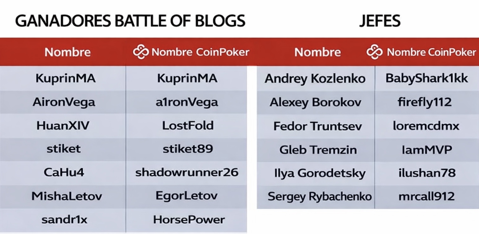 Para inscribirse en el torneo, introduzca su nombre de usuario de CoinPoker en el formulario a continuación antes del 26 de diciembre. Lo registraremos automáticamente en dos días.