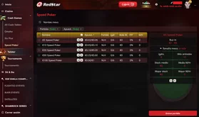 En RedStar Poker hay torneos rápidos de una sola mesa con una bolsa de premios aleatoria. Actualmente hay disponibles tres variantes: