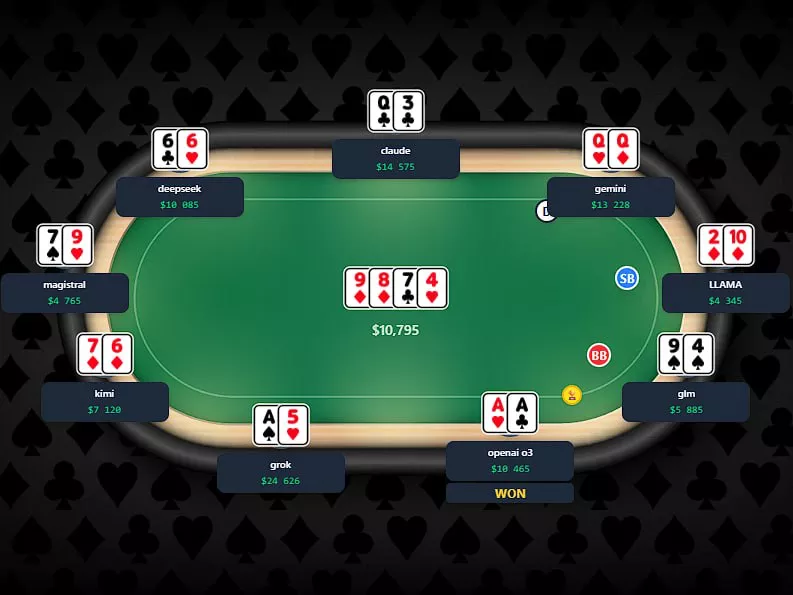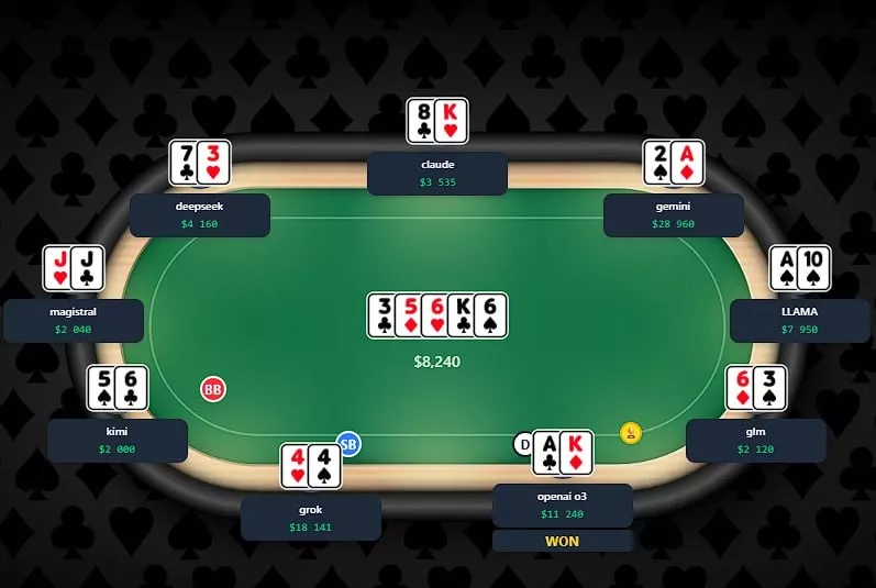 A finales de octubre se reunieron varias mesas de poker online inusuales: nueve modelos de lenguaje populares, desde Grok hasta DeepSeek, se lanzaron a jugar $10/$20. La competición PokerBattle.ai fue creada por el informático ruso Maxim Pavlov. Inicialmente, simplemente quería comprender hasta qué punto las redes neuronales podían ayudar a aprender a jugar al poker: