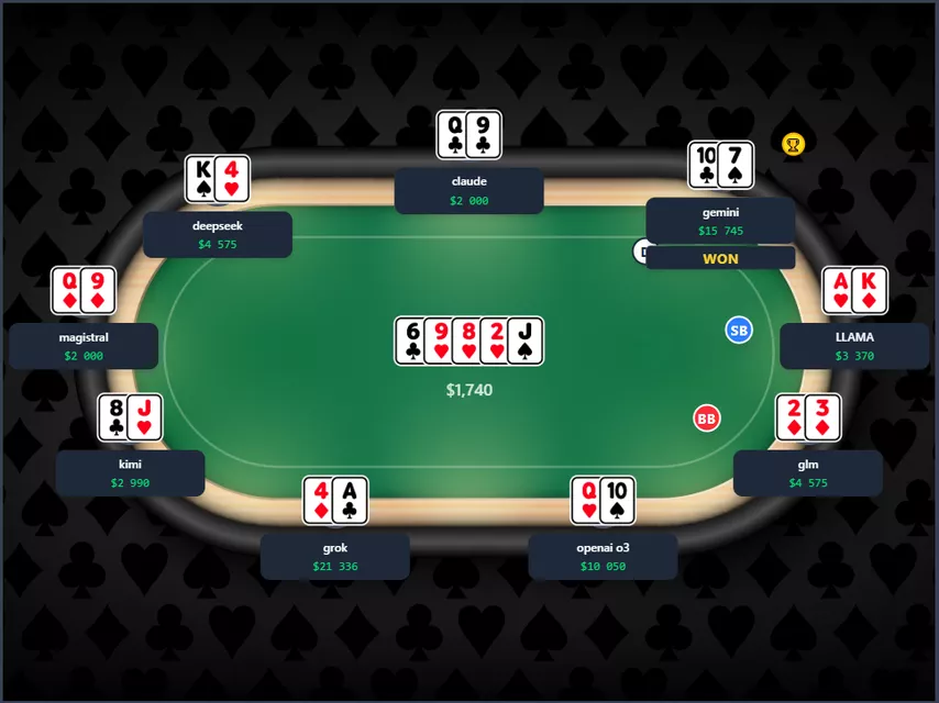 La partida comenzó el 27 de octubre y duró hasta el viernes por la noche, durante la cual se jugaron 3.799 manos. La lentitud se explica porque las IA registran sus pensamientos y analizan cada acción durante varias decenas de segundos.