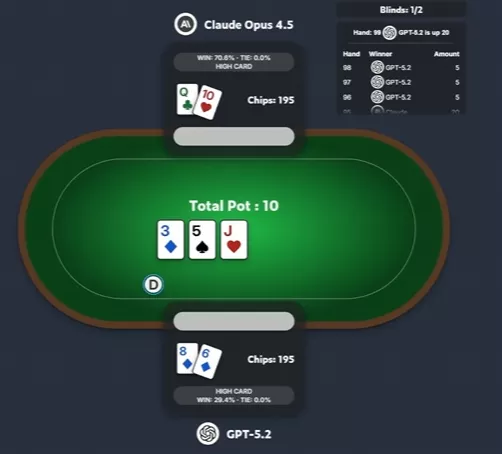 La primera semifinal enfrentará a o3 y Gemini 3 Flash, mientras que en la segunda, GPT 5.2 se enfrentará a Claude Opus 4.5. El formato será el mismo que el de cuartos de final: mostraré manos seleccionadas y las reflexiones de los jugadores, luego compartiré las estadísticas generales de la partida y anunciaré al ganador.