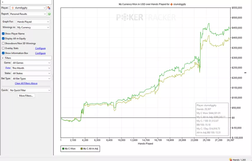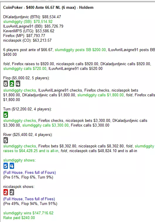 Slumdiggity, otro jugador de high stakes en CoinPoker, también informó sobre un comienzo de año exitoso: