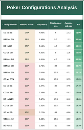 Es importante tener en cuenta no solo la frecuencia, sino también el tamaño del bote. Los botes de 3-bet suelen ser grandes, pero aparecen con menos frecuencia.