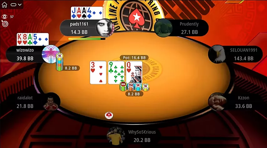 Desconocemos cuánto influyó la distribución de las fichas en la decisión de Selouan. Pads ocupa el tercer lugar de cinco y pudo haber intentado resistir a uno de los oponentes con menos fichas con un fold conservador. Podría haberlo hecho si su mano hubiera sido un poco más débil.