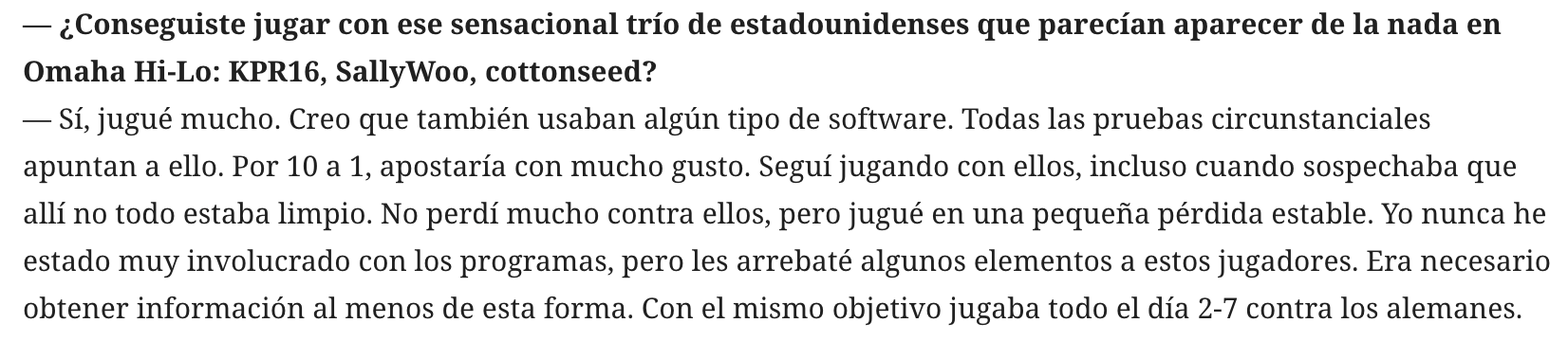 Nota del editor: Hablan de los jugadores estadounidenses más destacados, KPR16, SallyWoo y cottonseed. Tras ganar millones, todos abandonaron el poker. En una entrevista con nuestro sitio web, Alexander Kostritsyn también expresó sus sospechas de que utilizaban algún tipo de software.