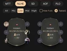 Sólo hay mesas 6-max. AoF no es popular: el lobby casi siempre está vacío.