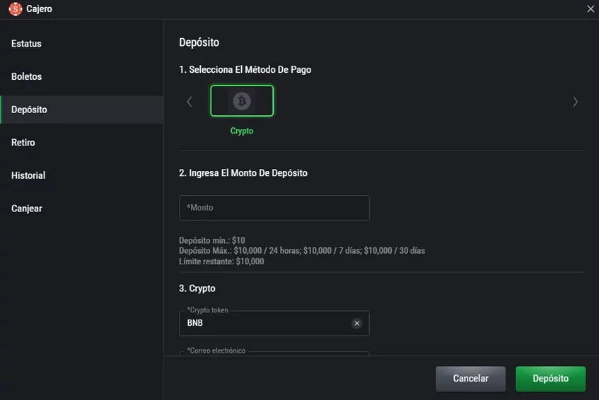 - Hacer clic en el botón “Depósito” en la esquina inferior derecha de la ventana.