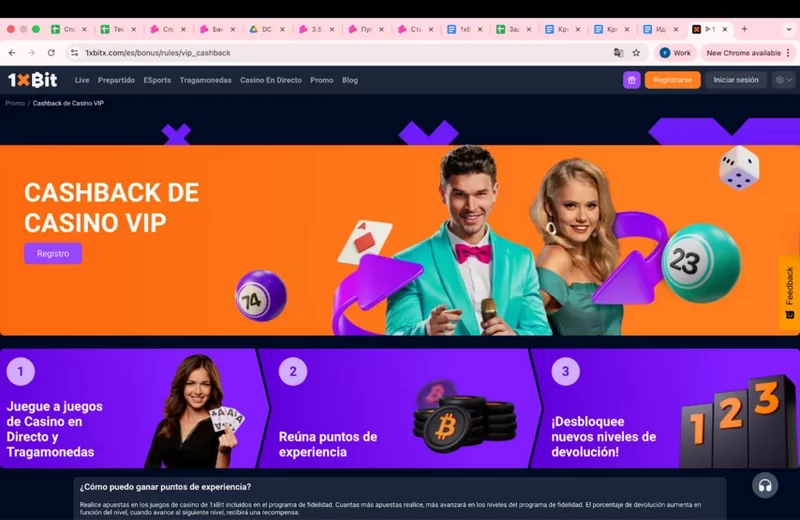 El programa de fidelización de 1xBit está dirigido tanto a los aficionados al casino como a los deportes. Ambos reciben cashback según los puntos acumulados. Acumularlos es simple. Cada apuesta en el sitio genera puntos; y cada 500 puntos valen $10.