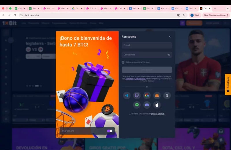 La casa de apuestas también ofrece alternativas de registro. Puede abrir su cuenta a través de Telegram, X, Twitch y Google, Metamask, Line, Discord y Apple ID.