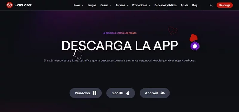 La app de CoinPoker integra en una sola plataforma el casino, el poker y la casa de apuestas. Para una experiencia más fluida, los usuarios de Windows, macOS y Android pueden descargar un cliente dedicado desde la web oficial. En iPhone no hay app en la Store, pero la versión móvil del sitio funciona bien en Safari y otros navegadores, de modo que se puede jugar sin instalar nada, directamente desde el navegador.