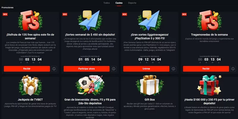 Hay docenas de otros bonos y promociones dentro del sitio. Pin-Up es uno de los sitios más completos y variados en este sentido. Algunos de ellos son: